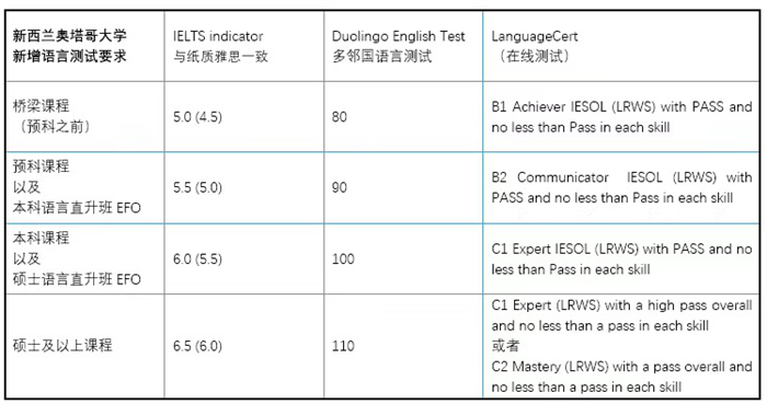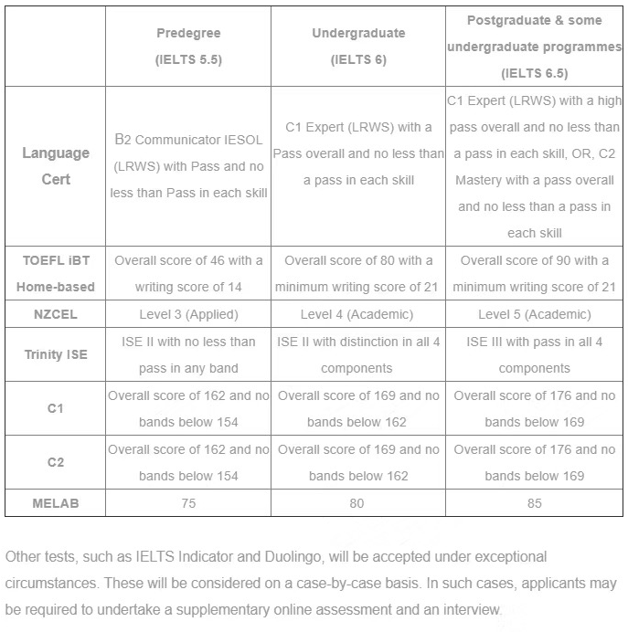 預科、本科、碩士及以上課程以及語言直升班課程全部接受多鄰國英語測試以及LanguageCert在線測試來進行申請,詳情如下: