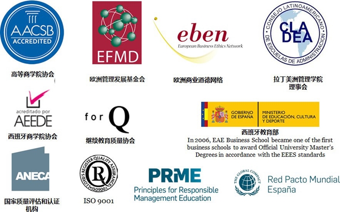 此外,EAE 商學(xué)院是最受人尊敬的國家和國際排名組織的成員,如:AACSB(高等商學(xué)院協(xié)會)、EFMD(歐洲管理發(fā)展基金會)、CLADEA(拉丁美洲管理學(xué)校理事會)、EBEN(歐洲商業(yè)倫理網(wǎng))和 ANECA (西班牙國家質(zhì)量評估和認(rèn)證機(jī)構(gòu))。